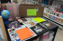 В пунктах приема принимают: 1. Портфели, школьные подростковые сумки, пеналы; 2. Ручки шариковые; карандаши простые; набор ручек; карандаши цветные; фломастеры; 3. Краски акварельные; гуашь; кисти для рисования; 4. Ластики; линейки; ножницы; 5. Клей; 6. Тетради, дневники; 7. Обложки для тетрадей; 8. Ватман; альбомы для рисования.