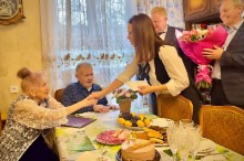 Замечательную пару с юбилеем поздравили заместитель Главы ЗАТО г. Железногорск Юлия Грудинина, а также руководители АО «РЕШЕТНЁВ» Евгений Патраев и Александр Берестов. Руководитель Железногорского территориального отдела агентства ЗАГС Дина Степанцова зачитала поздравление от имени Губернатора Красноярского края Михаила Котюкова.